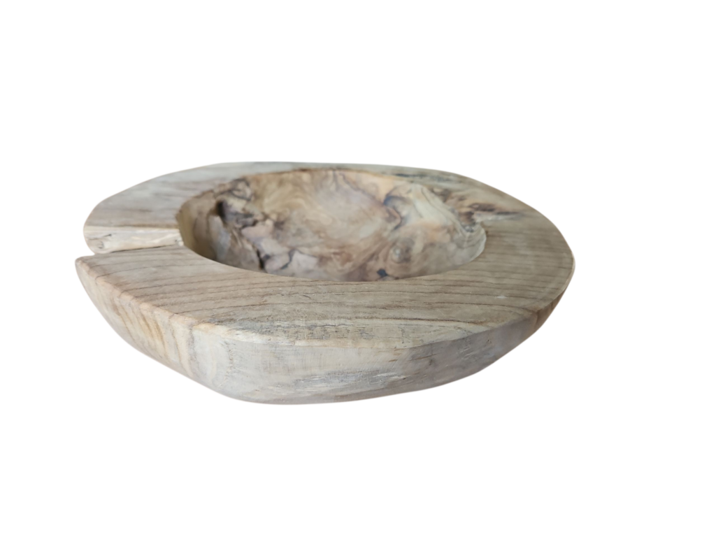 Teakhouten schaal 30cm september 28, 2025 Deze handgemaakte schaal van duurzaam teakhout brengt warmte en karakter in huis. Perfect als fruitschaal of decoratief middelpunt op tafel – stijlvol, natuurlijk en tijdloos. +/-30cm