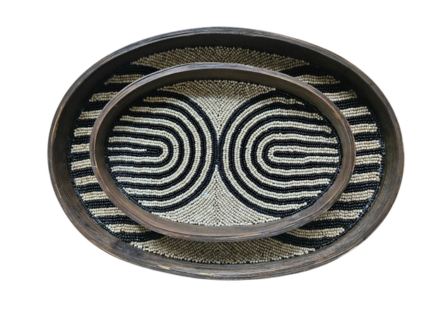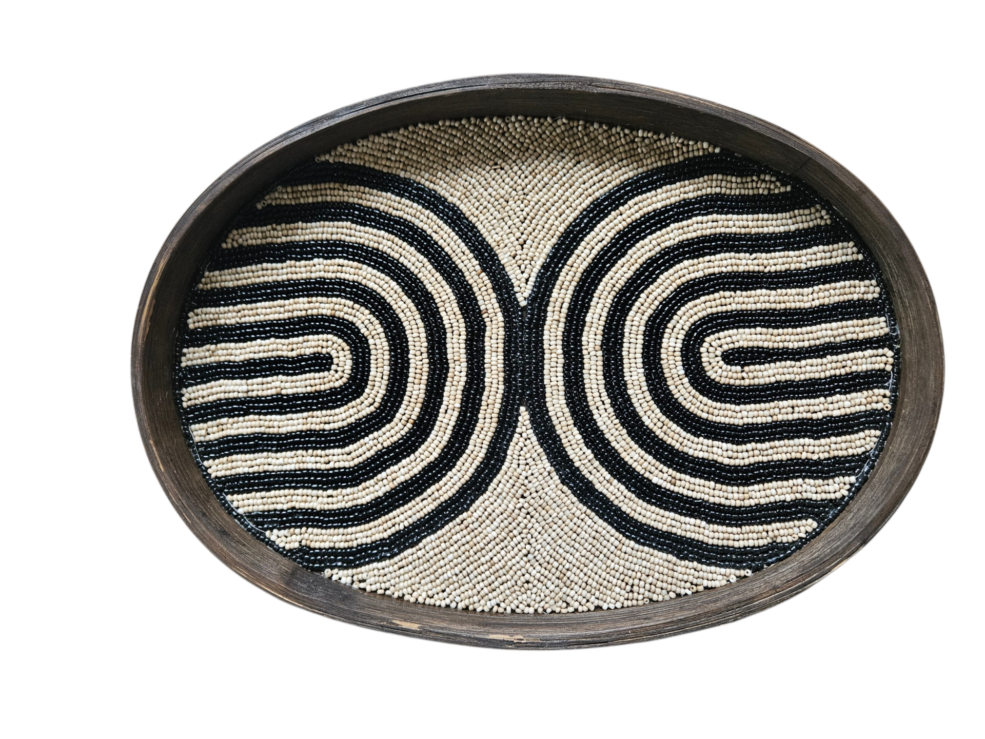 Dit handgemaakte dienblad van hout met kralen is een stijlvolle en unieke toevoeging aan je interieur. Perfect om leuk te decoreren, maar ook leuk om aan de wand te hangen als decoratie. Elk dienblad is met de hand gemaakt en daardoor uniek. 36x26x3cm